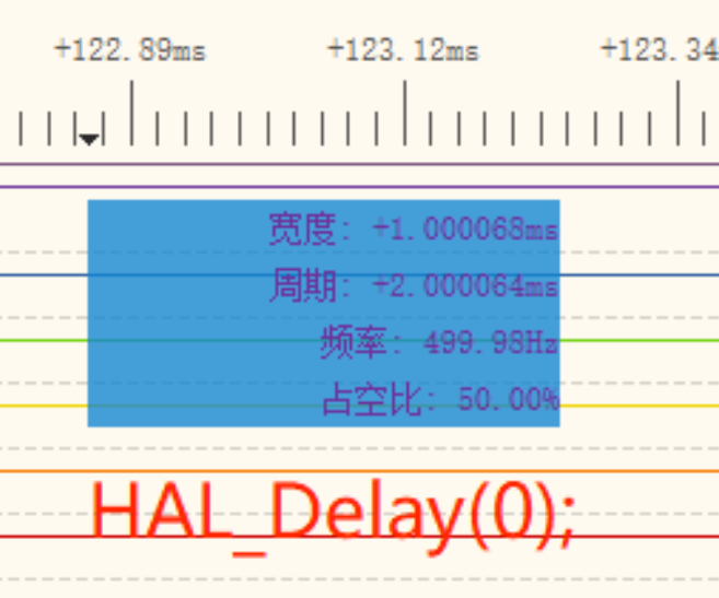 测得HAL_Delay(0)的延时时间为约为1ms。