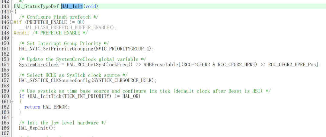 当我们选择好时基之后,系统会在HAL_Init中对时基进行初始化。