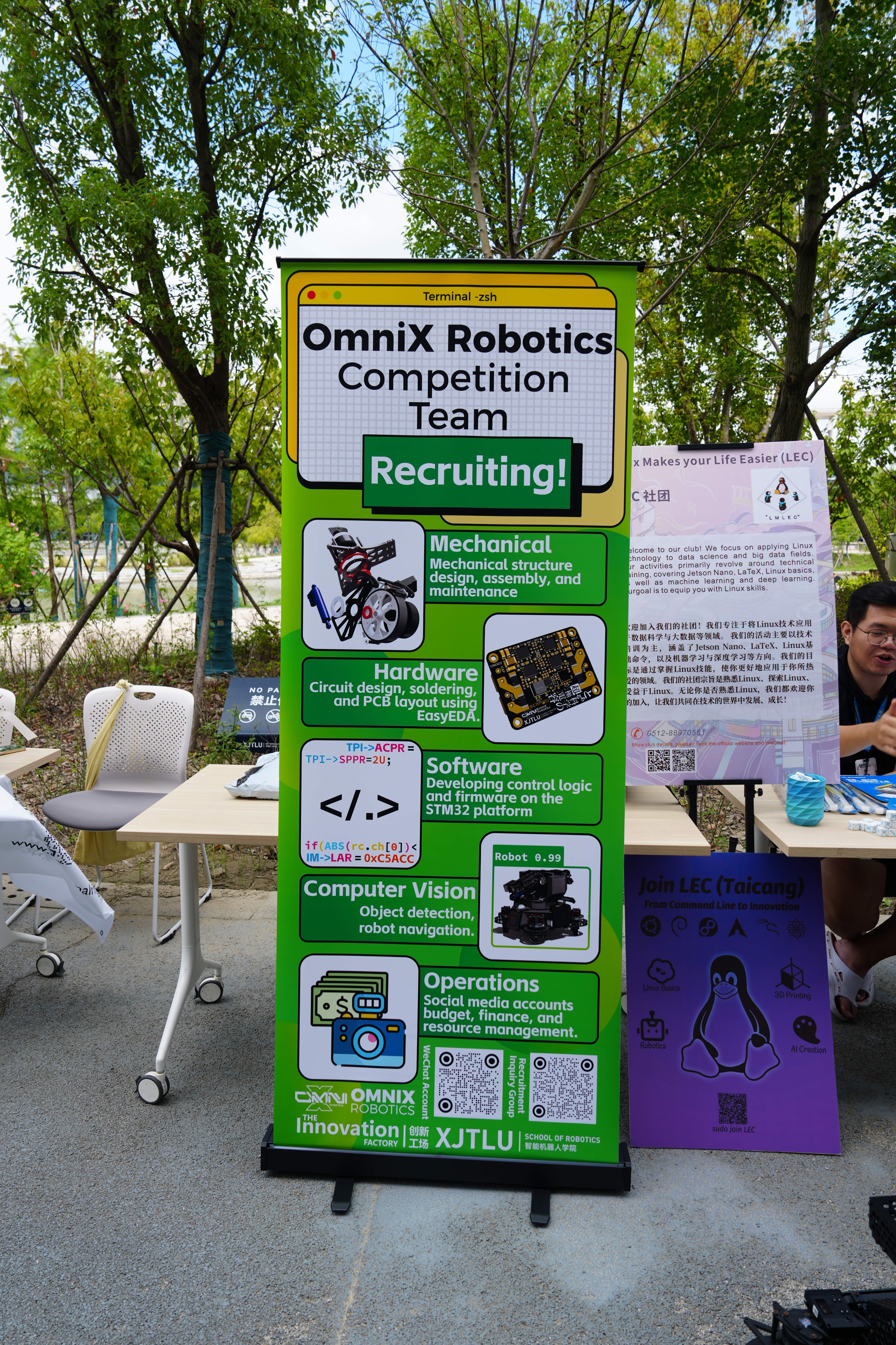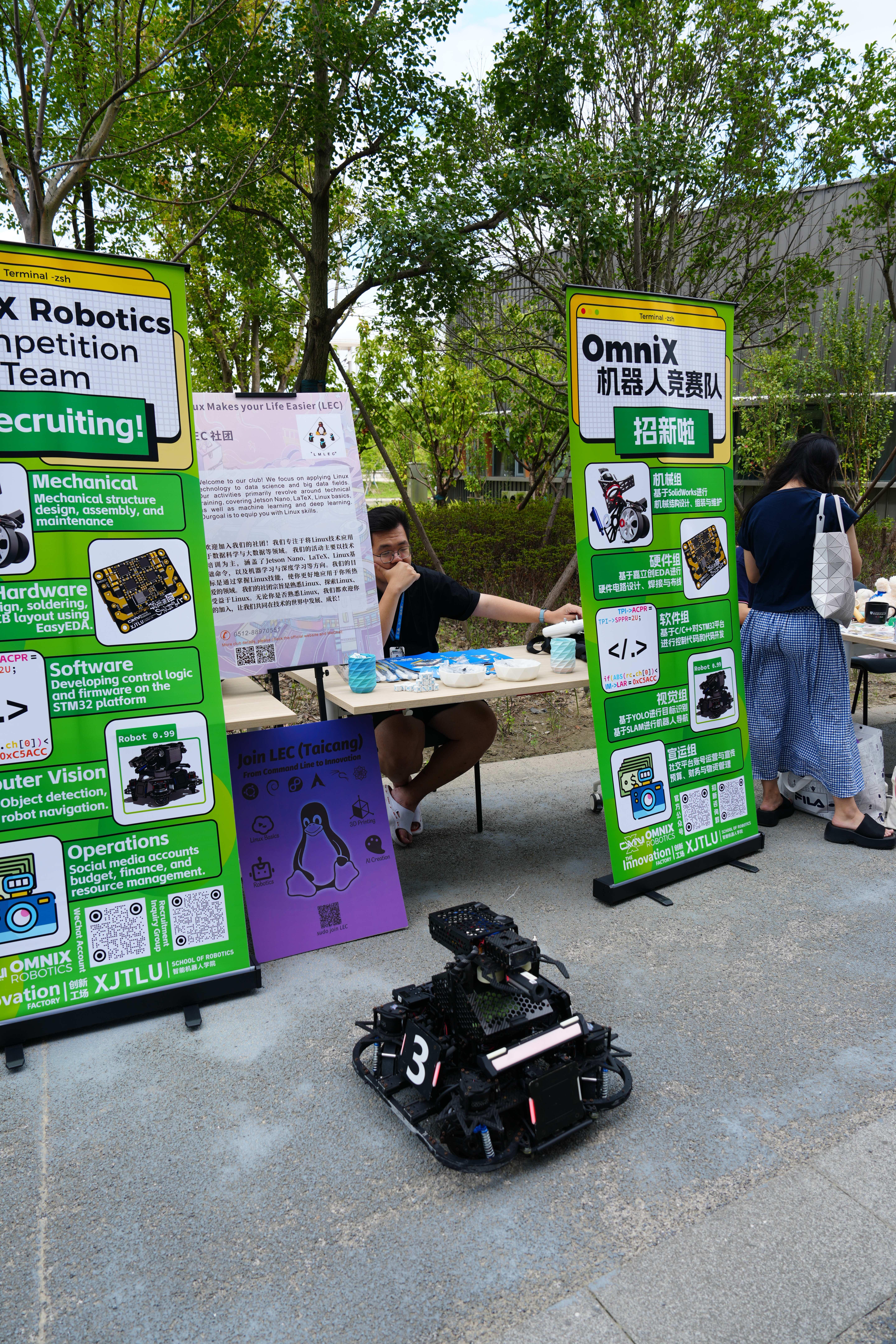 9月21日,OmniX机器人竞赛队招新活动在学生中心顺利开展,现场人气爆棚、反响热烈。本次招新活动凭借双重科技亮点与社员们的精彩表现,成功吸引了众多同学驻足参与,不仅收获满场好评,更超额完成招新目标,为嘉立创注入了大批新鲜血液。