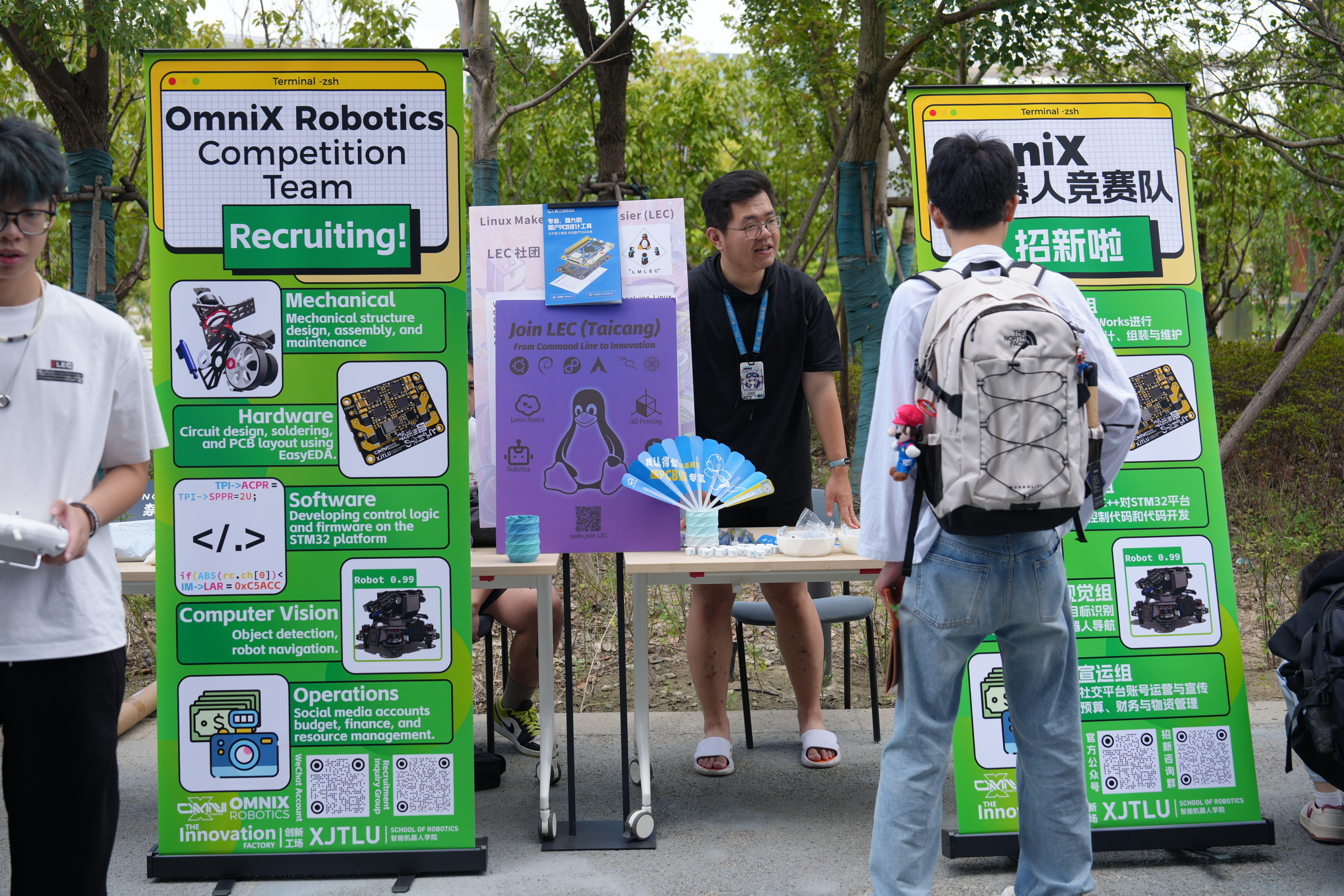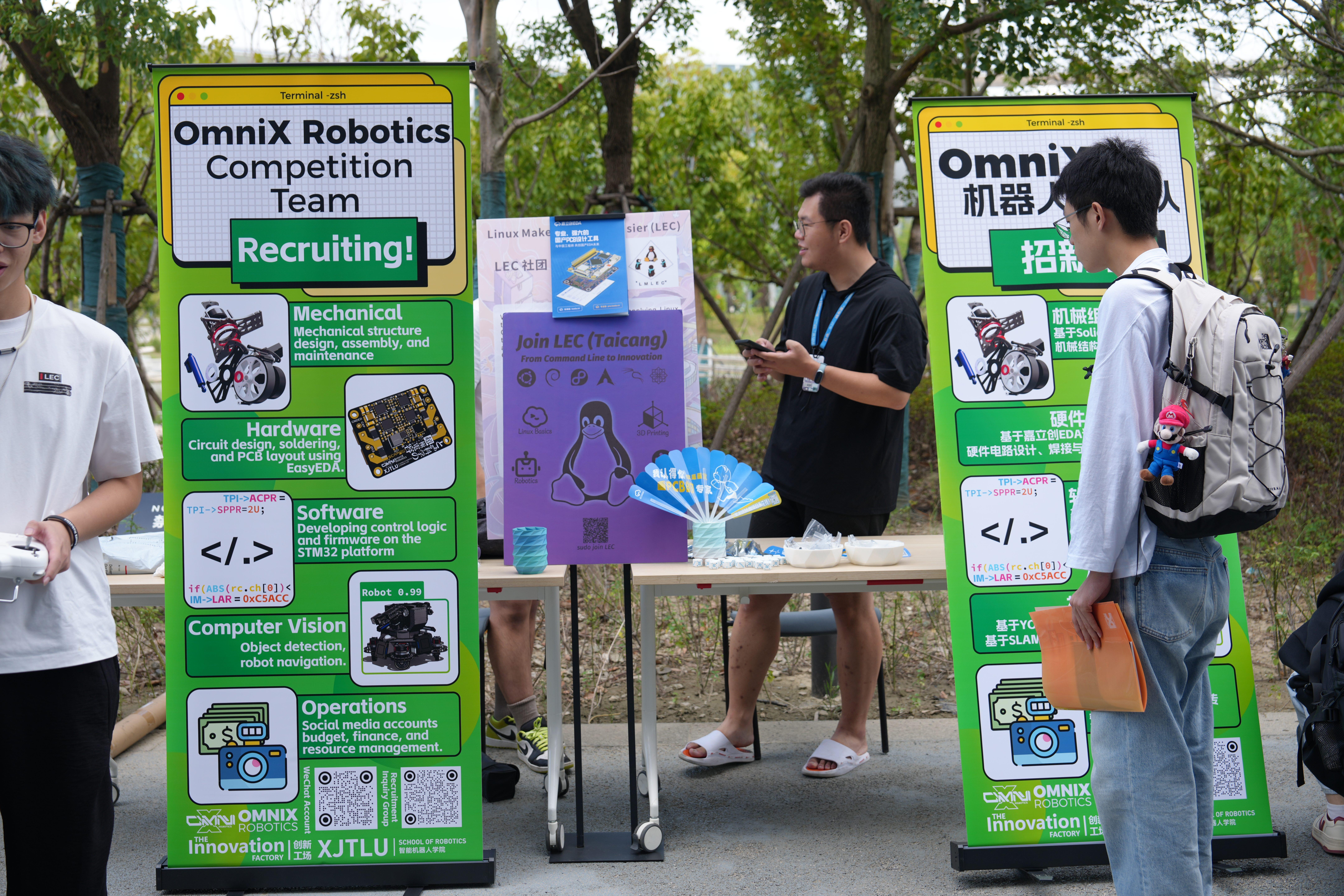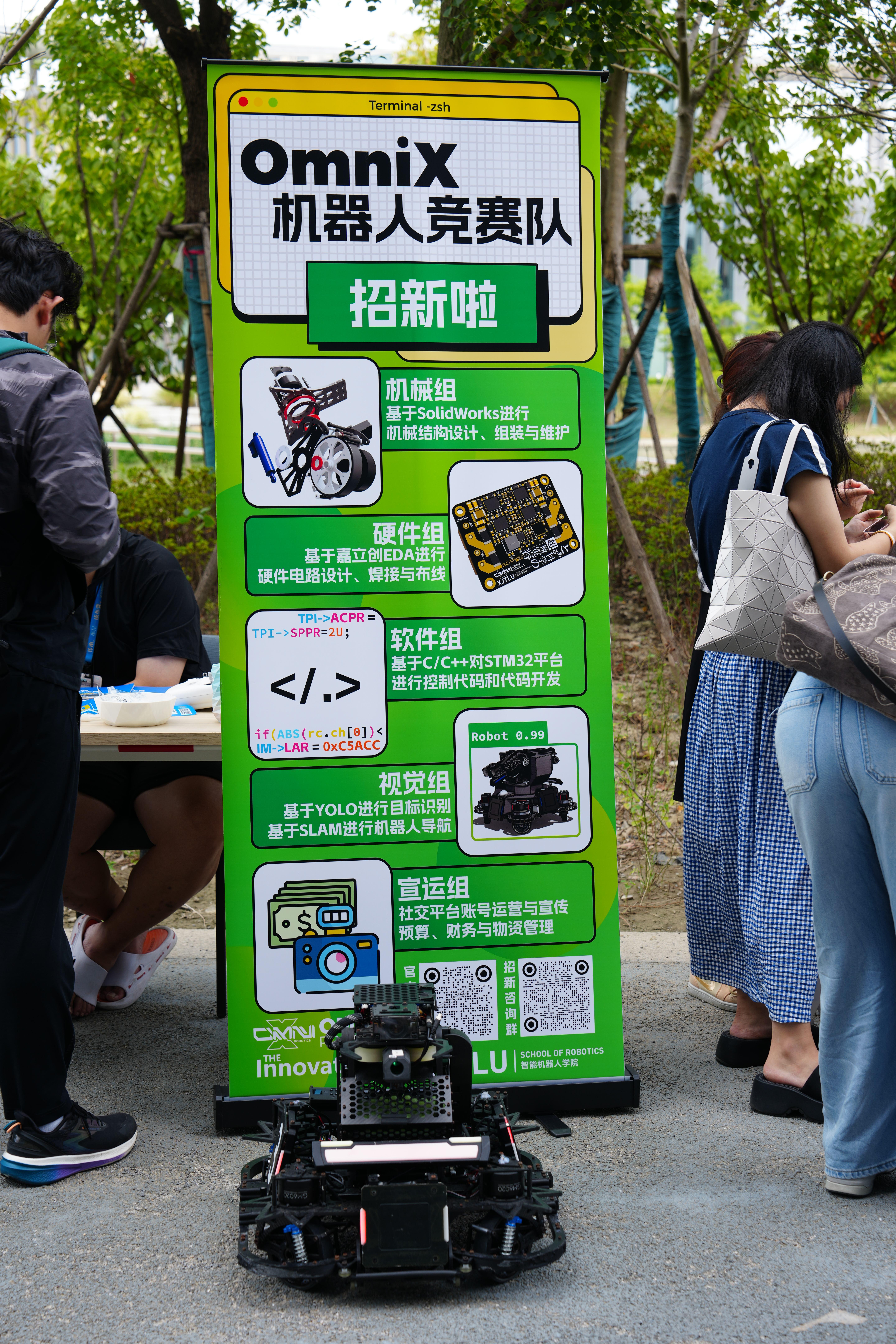 面对同学们的热情关注,OmniX的社员们巧妙融入幽默风趣的表达,将复杂的技术知识转化为生动易懂的案例,既解答了同学们的专业疑问,又营造了轻松愉快的交流氛围。这种“专业+风趣”的介绍方式,让咨询的同学络绎不绝,现场互动氛围持续升温。