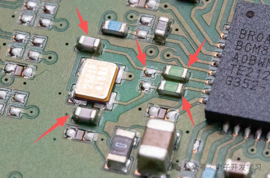 旁边还预留了一个BCM89832的电路位置,但是空贴,看来更高端的车型需要挂更多的以太网设备时会用全贴的板子。