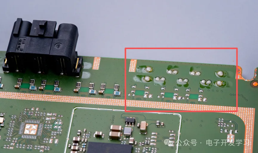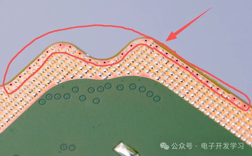而露铜上面为啥有这么多锡球呢,有了这些锡球之后,就可以和屏蔽壳或者弹片形成良好接触,避免因高度公差导致的接触不良。而且饱满的锡球也是焊接良好的直观标志。