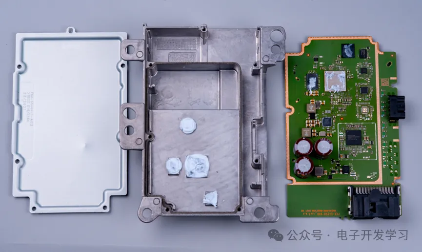 汽车电子模块设计的真是足够简洁,这样关键的一个网关设备,拆解开除了螺丝竟然只有三个件。但是仔细一想也是,对于汽车这种关于人员安全的设备,任何一个多余的设计、不严谨的设计都可能导致重大问题。
