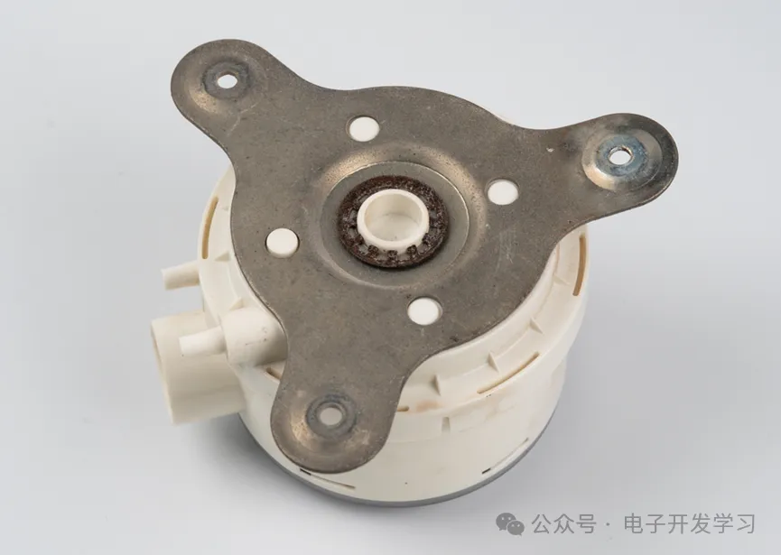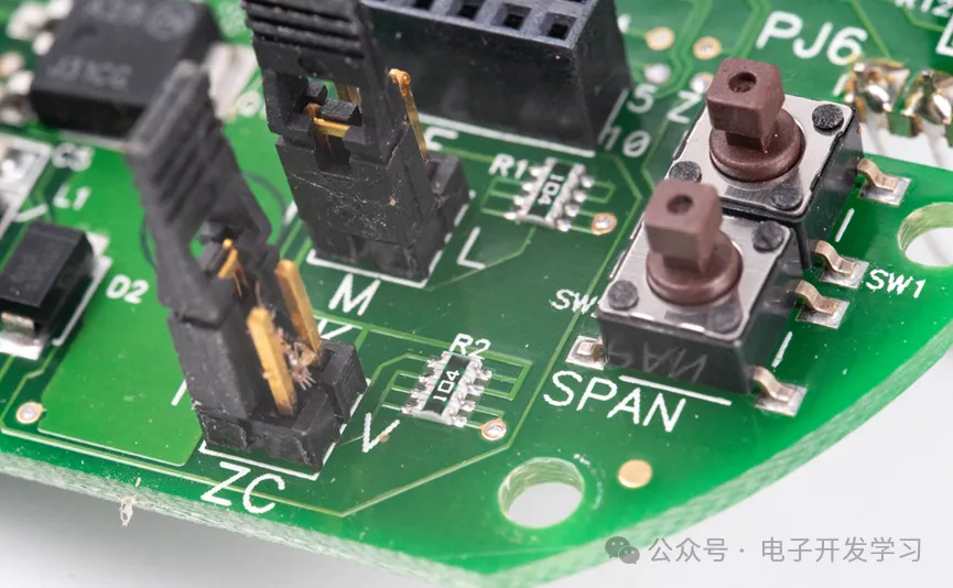 果然我猜的没错,这个电路板的背面有一个霍尔传感器,当电路板安装上去之后,这个霍尔传感器刚好插入前面说的那个磁铁的位置,能用来检测磁铁位置。