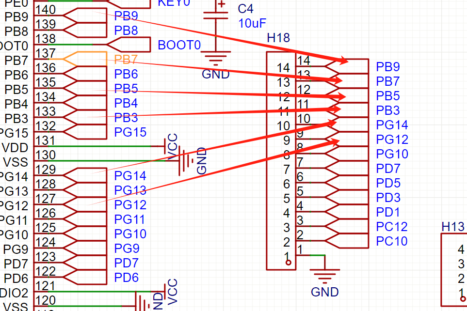 可以看到,它们几乎是交错排序的,这样子做的好处是:当我们进行PCB布局的时候,这样子的排列可以很好的利用空间,降低飞线难度提升系统板的稳定性和美观。