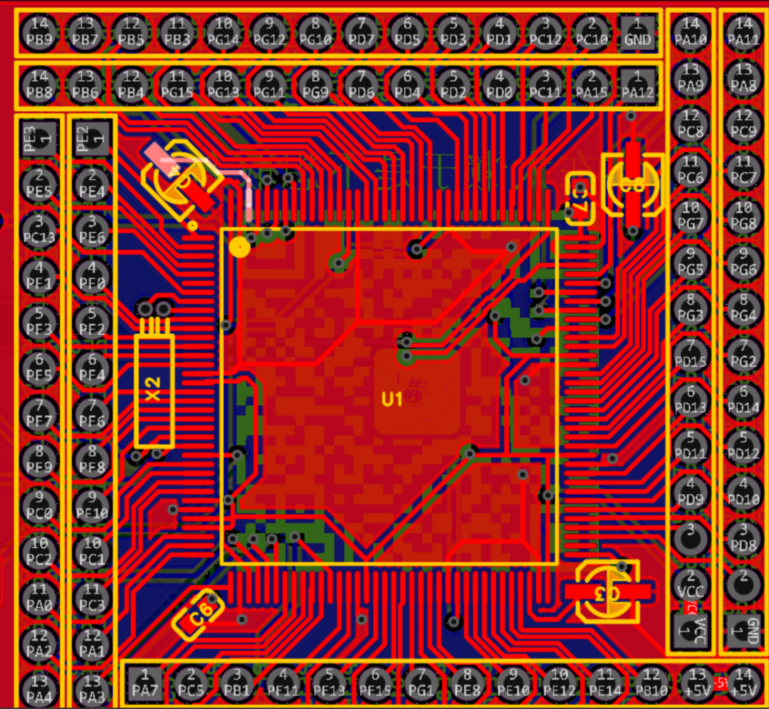 作为一块核心板或者说最小核心板,它应该具备尽可能小的体积,尽可能多的引脚引出,提供基础电源(5V)下载接口,Boot按键,复位按键以及最基本的外围电路。