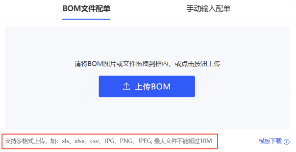小贴士:建议下载并使用平台提供的标准BOM模板填写,字段对齐更准确,上传成功率更高!