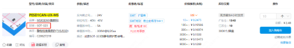 → 实际该型号正确写法应该是用空格间隔:TVS PESD1CAN-UX-MS 美森科