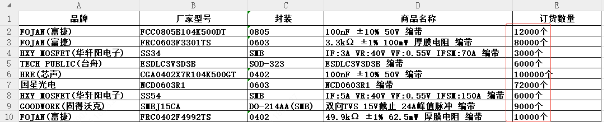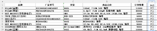 例如:需要100个电阻,直接填 100,而不是 100只、100个 或 100PCS。
