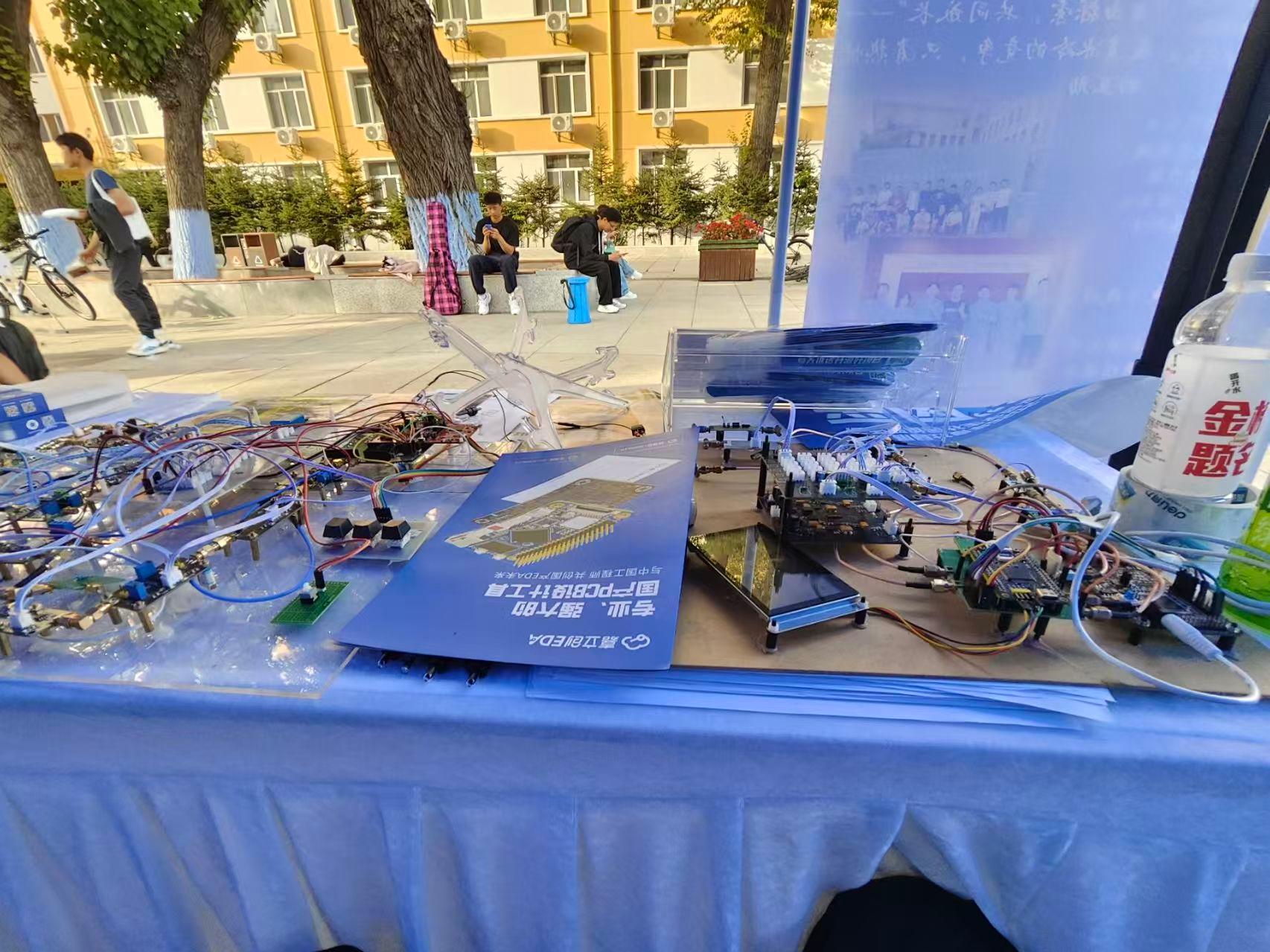 本次协会招新,我们特别联合嘉立创为大家准备了200元彩色丝印券作为设计支持。在彩色PCB板上不仅融入了校园地图元素,还巧妙利用元器件封装模拟校园建筑轮廓,使整体设计兼具创意与纪念意义。同时感谢嘉立创提供的嘉立创EDA宣传易拉宝、嘉立创宣传册、嘉立创宣传扇子等。