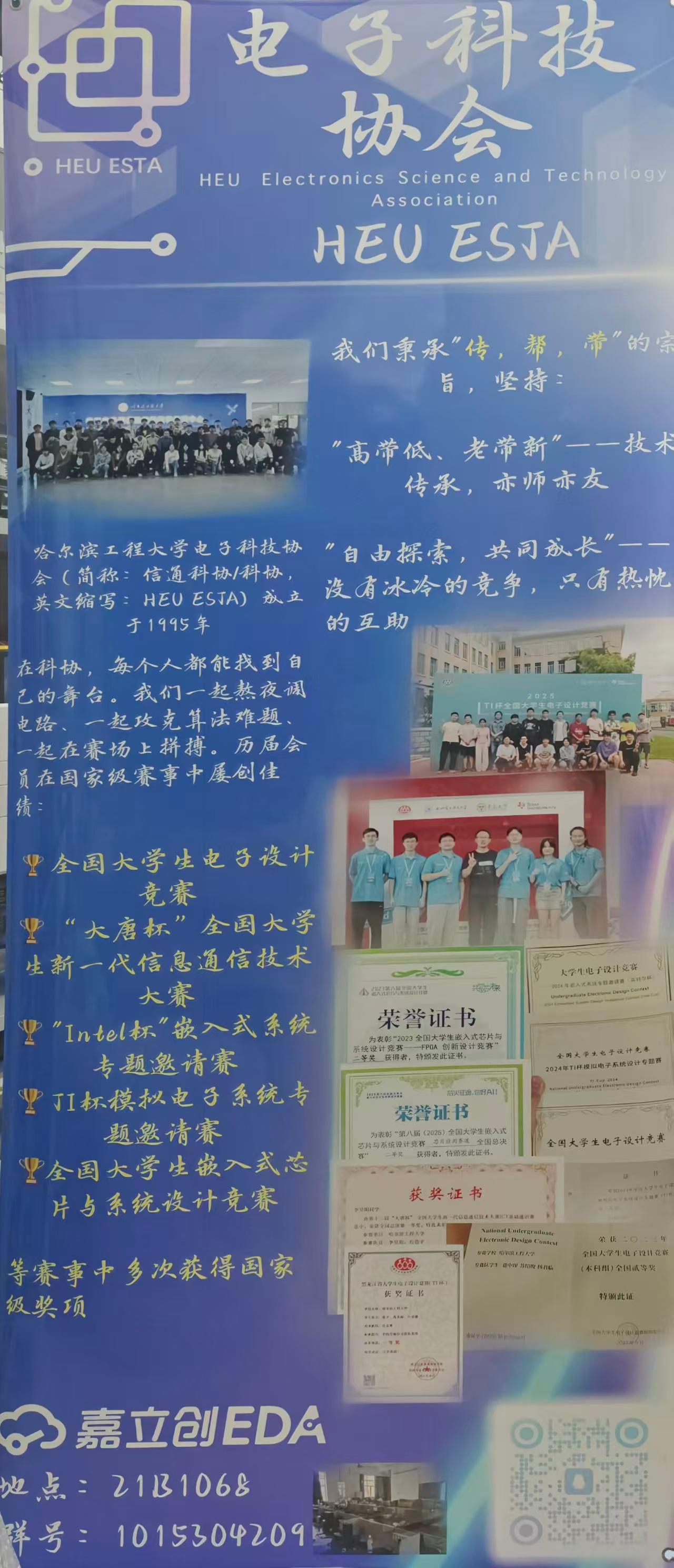 电子科技协会(即信通科协)(全称:哈尔滨工程大学电子科技协会;简称:科协;缩写:HEU ESTA)成立于1995年,是一个纯粹的技术性团体,以培养基础扎实、思维开阔的技术性人才为目标,广泛吸纳并培养科技创新人才。