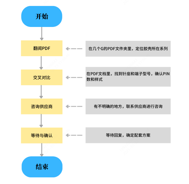 在做新项目的时候需要用到连接器,想翻看旧项目的BOM表参考一下,却发现只记录了一个胶壳型号,比如 XHP-2;检查仓库时,发现只剩下端子,对应的针座用完了。想进行采购时,还需向供应商寻求配套支持并耗时等待回复。