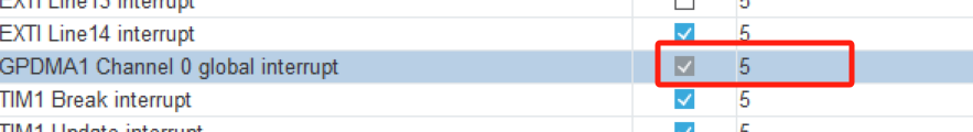不过让程序跑下去也行,我们进配置文件把优先级限制改一改,改成6,让我们的DMA能触发中断。