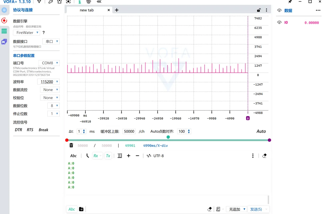 可以看到正常的采集到了信号,接着我们接入一个方波或者正弦波信号。