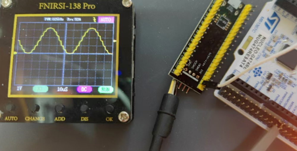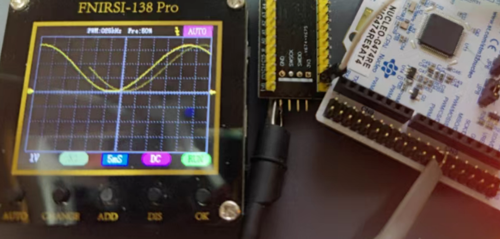 HAL_TIM_Base_Start(&htim7); HAL_DAC_Start_DMA(&hdac2, DAC_CHANNEL_1, (uint32_t*)sine_wave, SINE_WAVE_SAMPLES, DAC_ALIGN_12B_R);