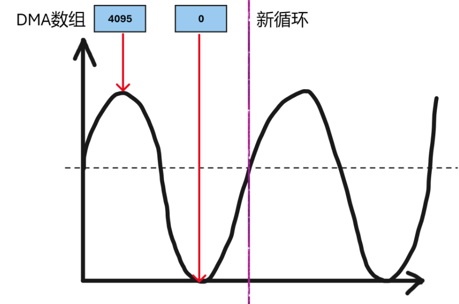 DMA通过把缓存区中存储的正弦波的值经过每次定时器事件触发之后转给DAC。
