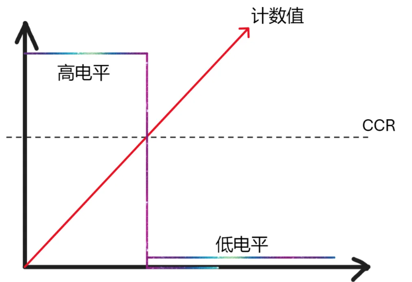 PWM模式本身并不复杂,是利用CCR和计数值(CNT)的值来实现输出高低电平。主要用于生成周期性信号,控制信号的占空比,通过调节占空比来控制输出的功率或强度。