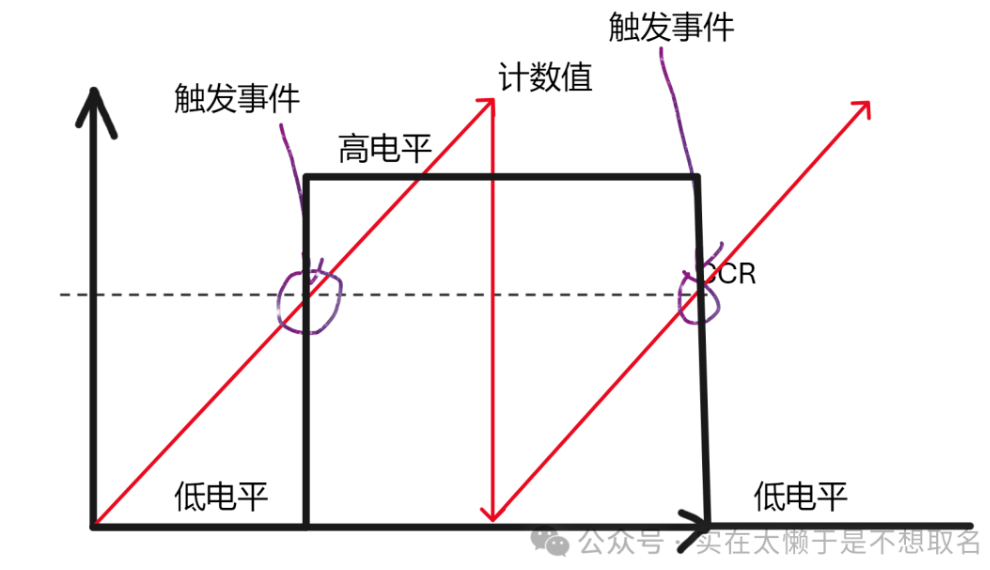而输出比较模式则不一样。通道设置为输出比较模式之后,定时器通过比较计数值与预设值,当两者相等时触发输出信号的改变,定时器会触发一个事件,这个事件后面会说。通常用在占空比比较固定,常用于生成定时脉冲或在特定时刻产生事件。