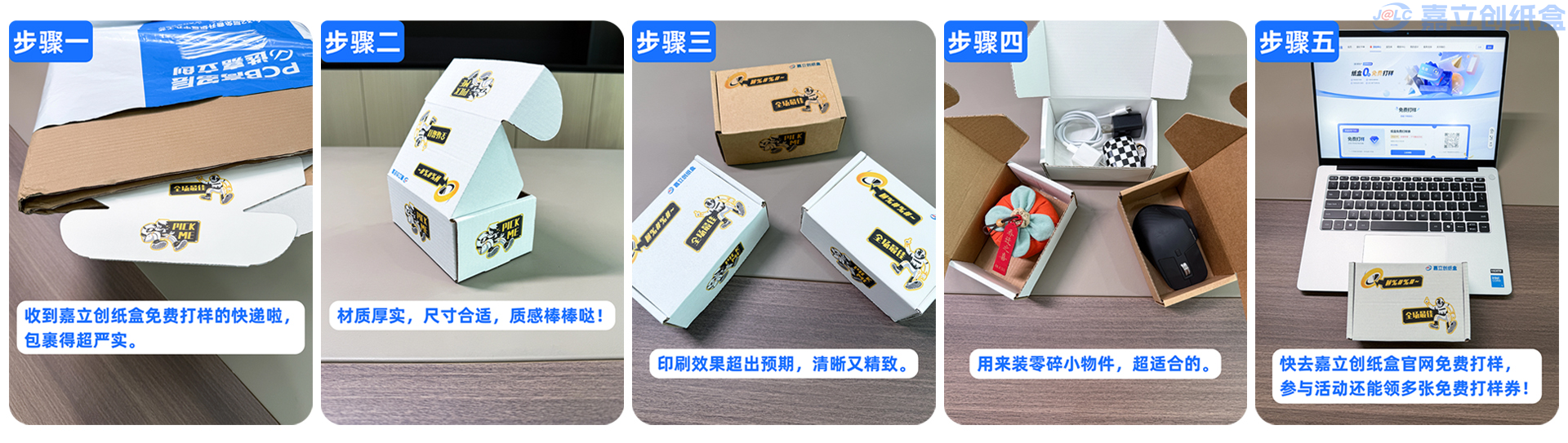 嘉立创纸盒官网进入“免费打样”活动,领取免费打样券后按照规范要求即可正常下单。