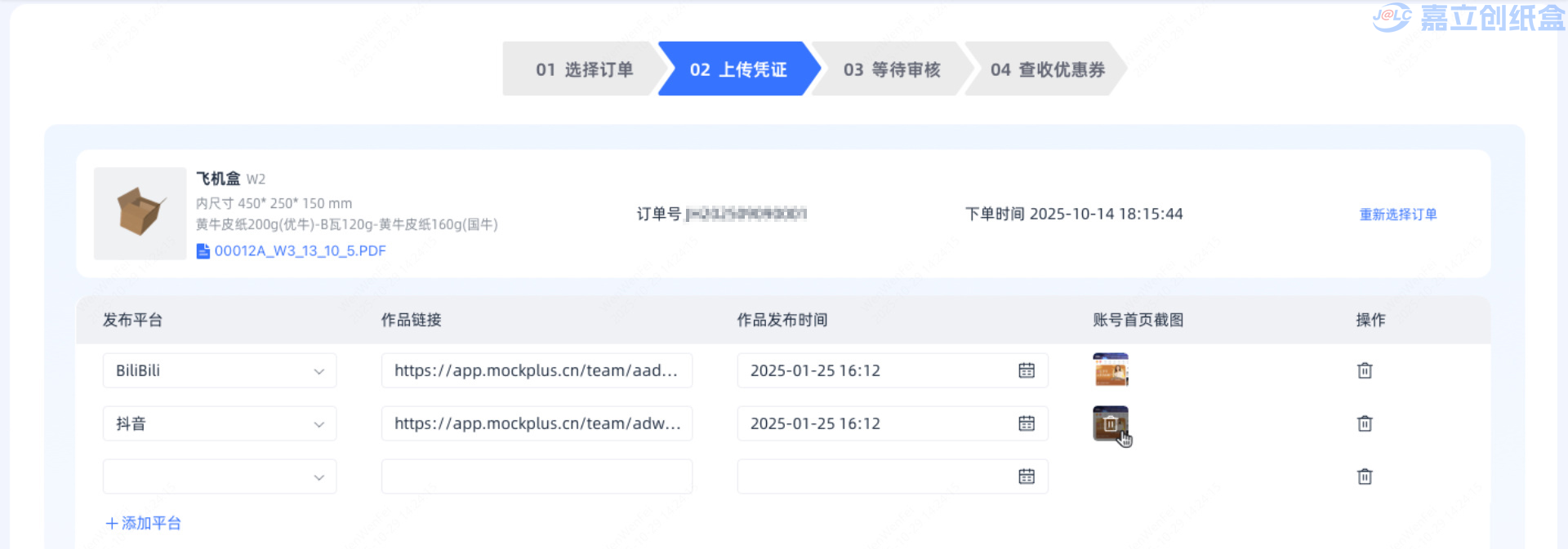 即刻行动,只需3步赢取惊喜福利!点击下方链接即可参与嘉立创纸盒晒单活动:https://www.jlc-zh.com/share-order-coupon