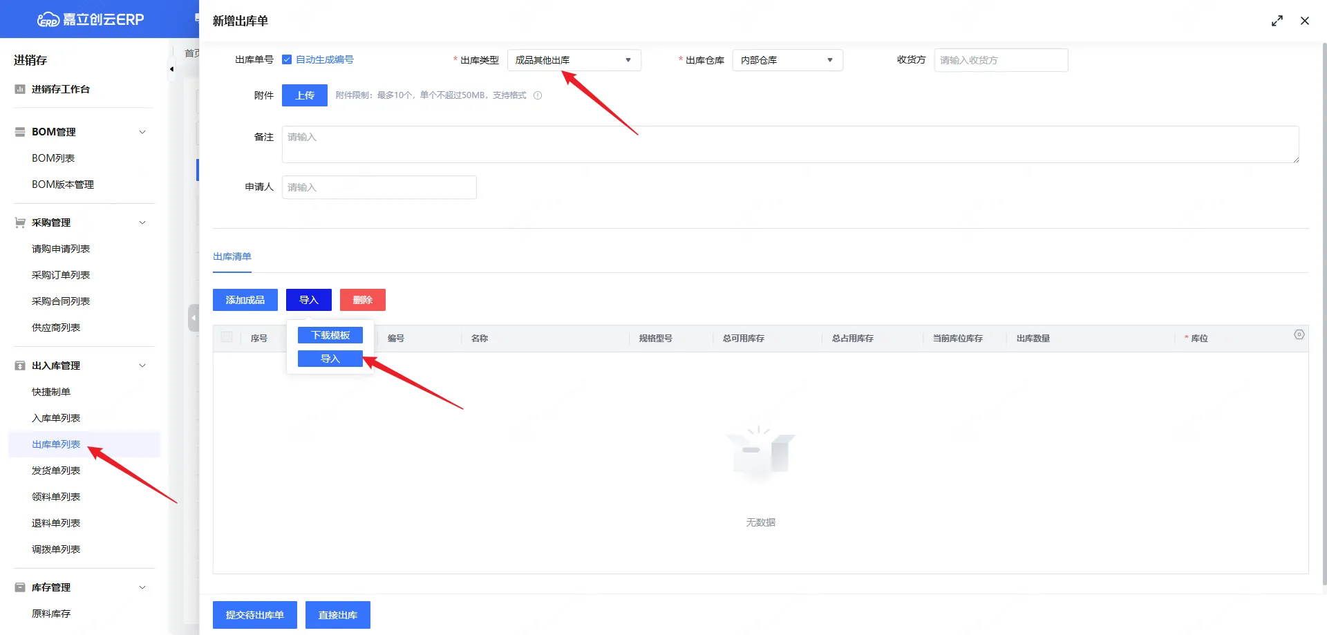 一、出库单-其他成品出库,增加便捷导入功能