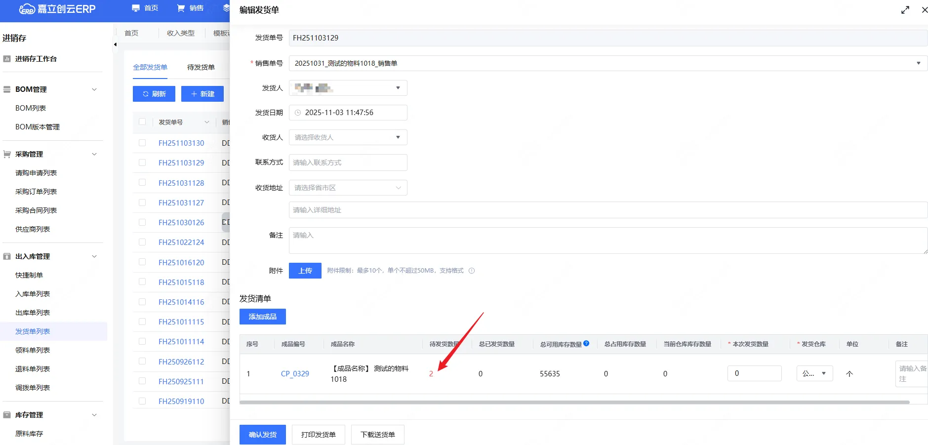 3,发货单列表的“待发货数量”数值使用红色字体显示