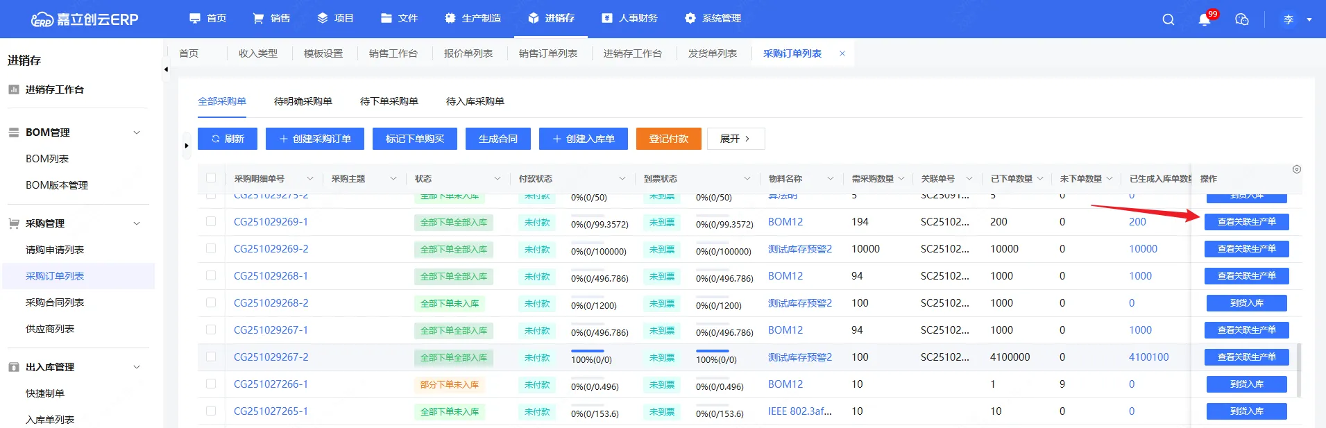 4,采购入库后增加“查看关联单”的便捷入口