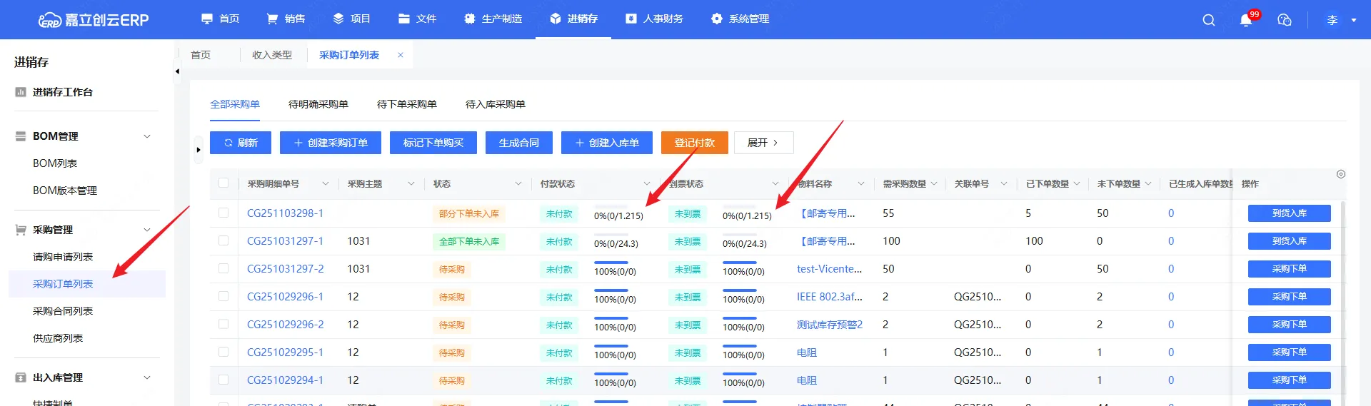 六、采购订单列表,新增付款进度、到票进度