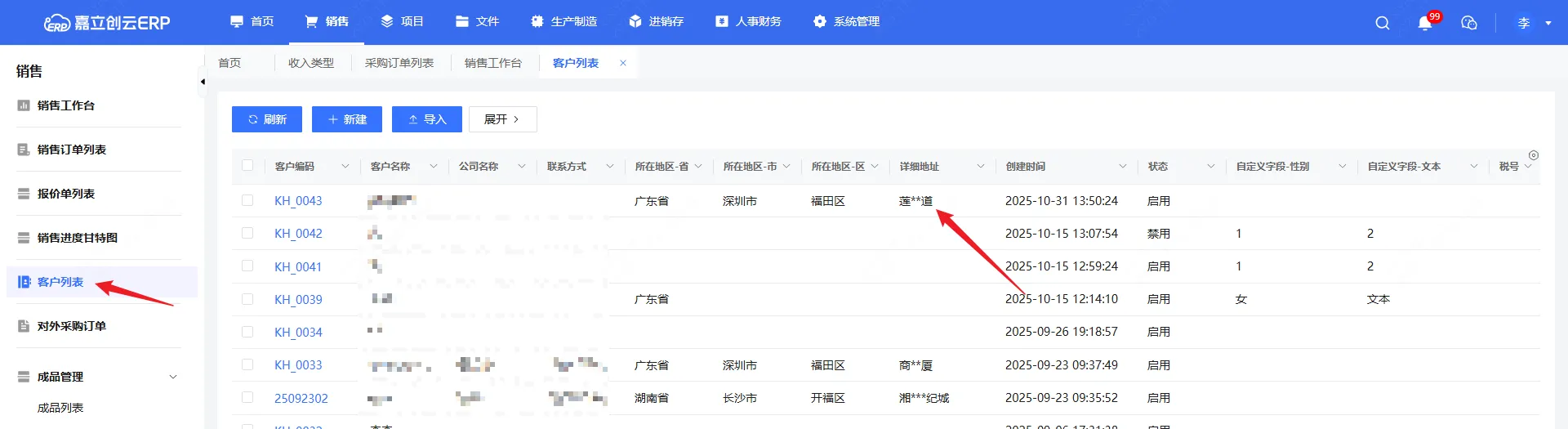七、客户列表,增加所在地区-区、地址字段显示
