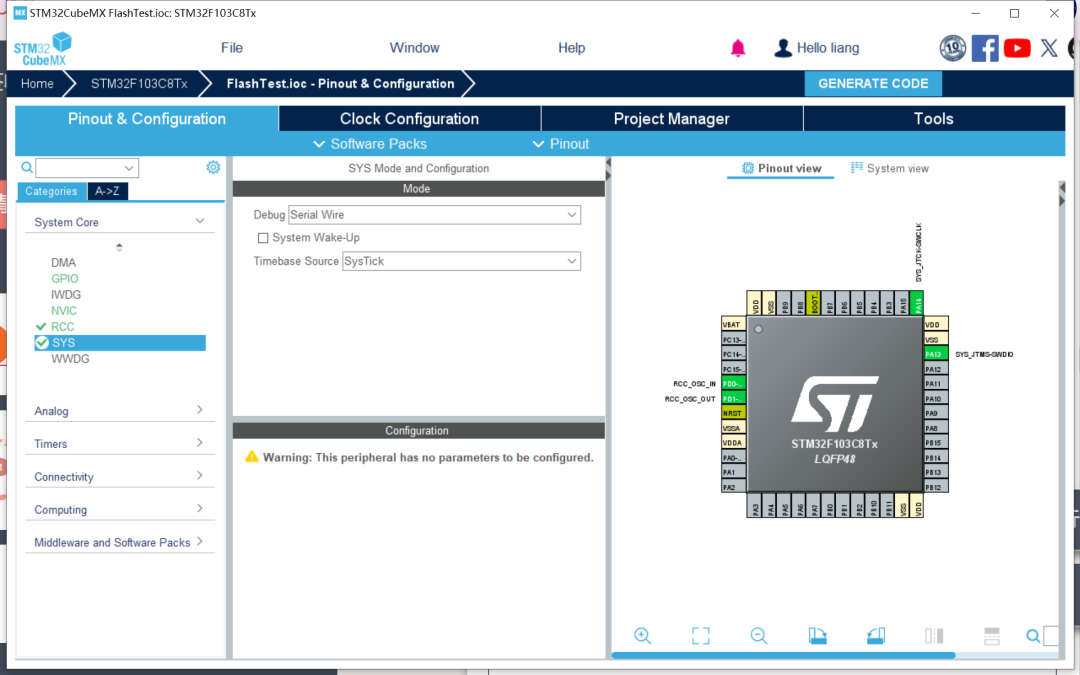 我们利用CubeMX创建一个空的工程,因为内部FLASH的读写不需要涉及到任何的外设。因此不需要其他的设置。