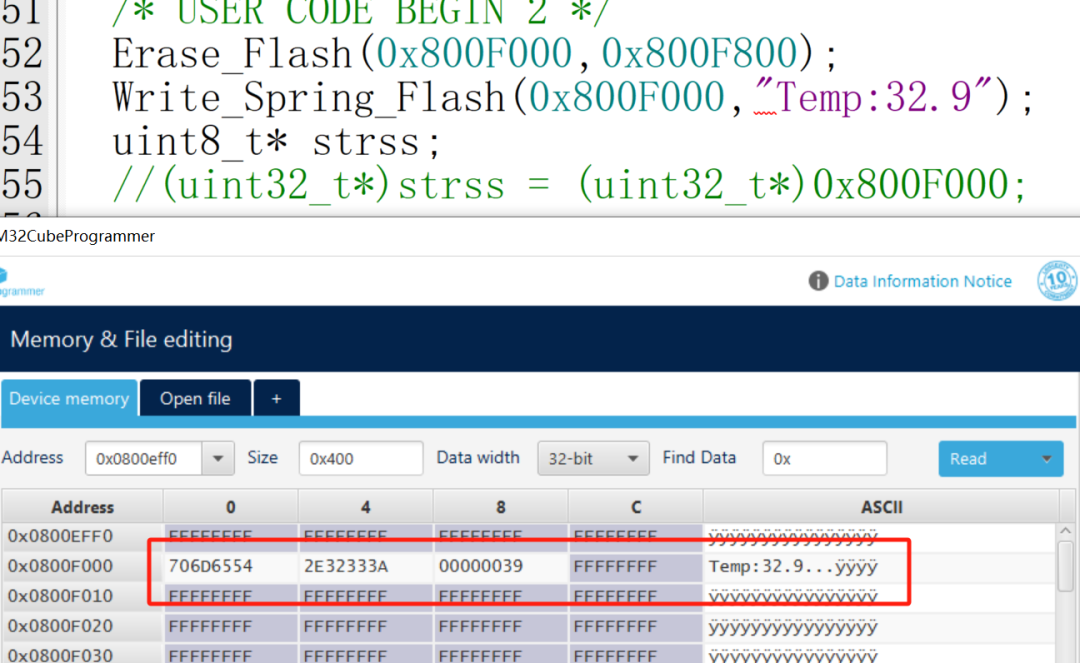 可以看到我们的数据成功的写入了进去,其实这里面还涉及到了单片机的大端小端存储方式。这里就不过多赘述了。