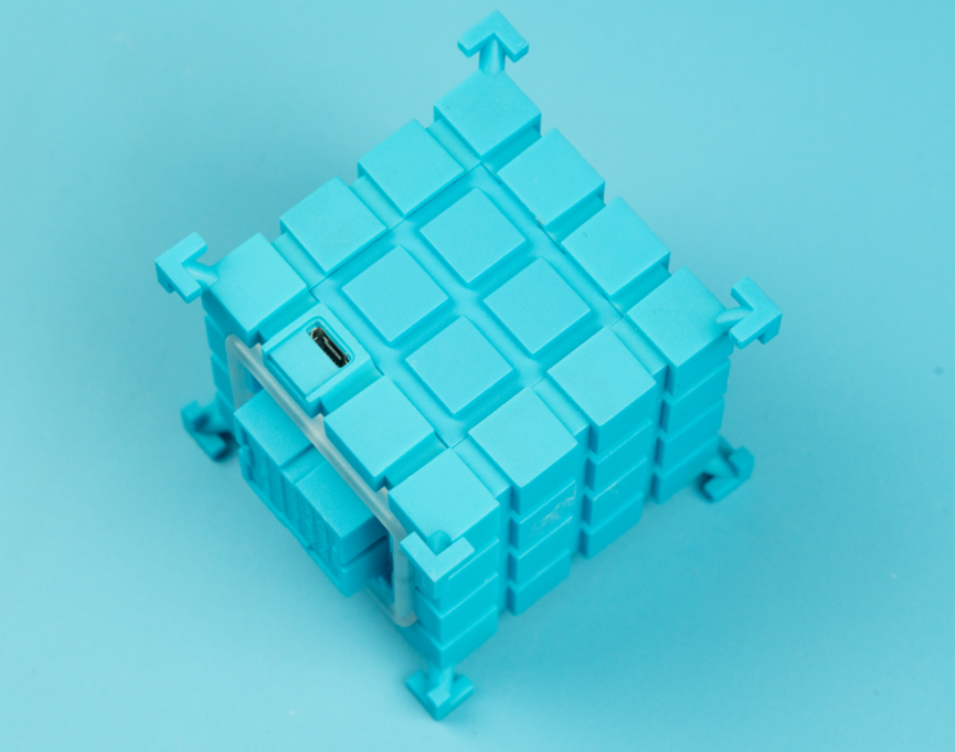 里面装了这样一颗可编程的魔方,说是魔方,其实并不是魔方,没法转,但是它有一个Micro USB口,看起来可以编程。