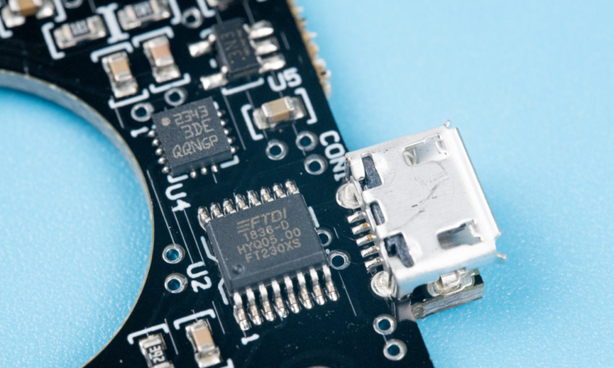 USB口这里有一个FTDI的FT230XS-R,功能是USB转串口,封装为SSOP-16。波特率范围从300bps到3Mbps。