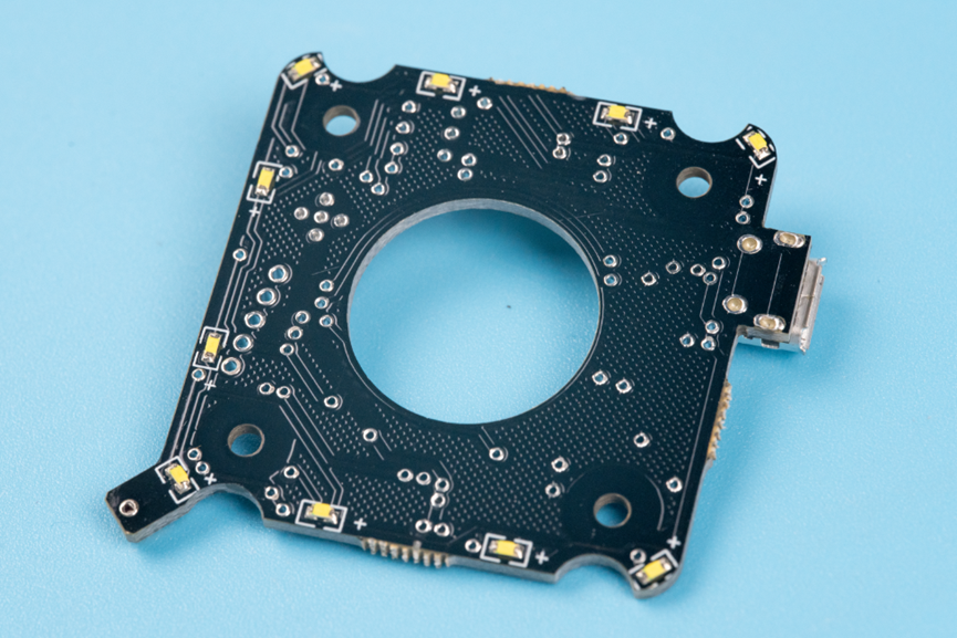 去掉一侧挡板之后看的就比较清楚了。FPC灯板像一个四爪鱼一样把四个爪子伸到电路板的四个角。