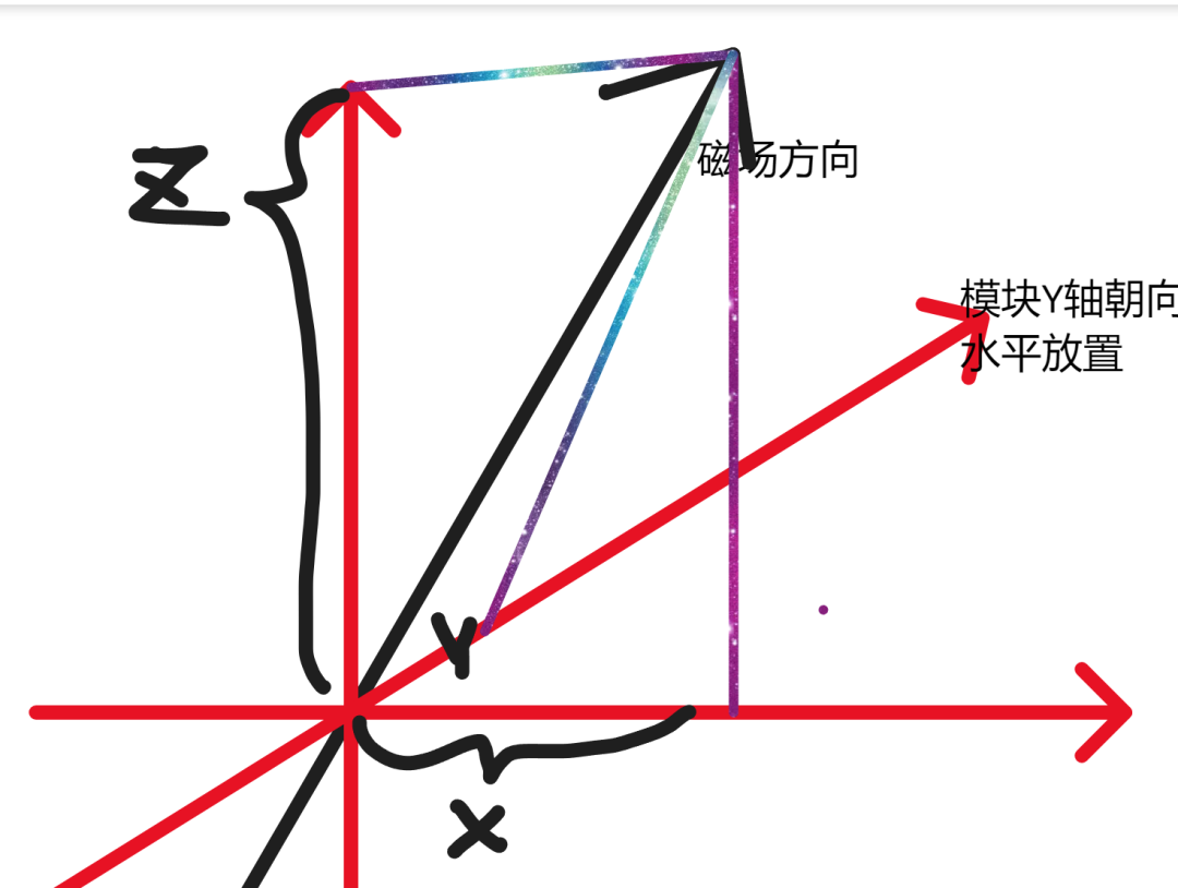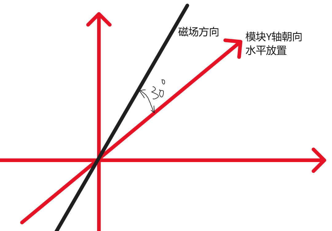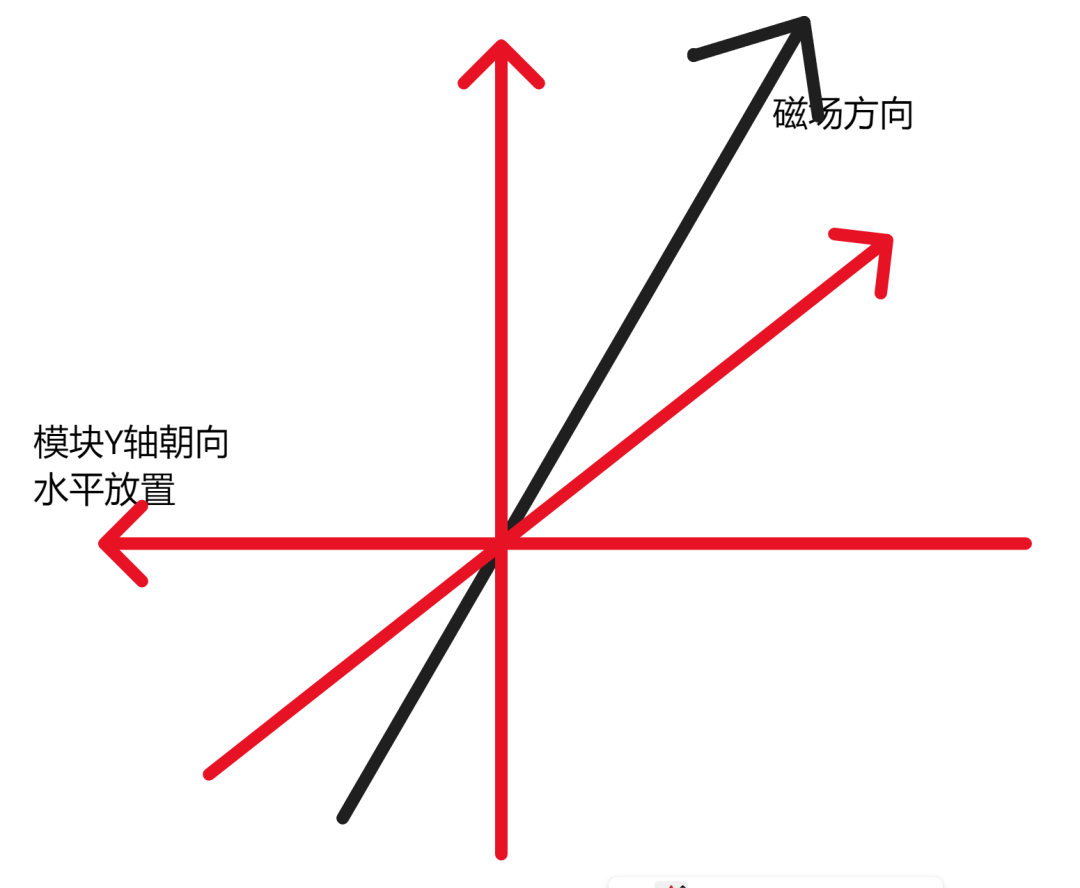 这源自于我的计算方法的错误,模块的Y轴指向磁场方向的时候,这时候XYZ坐标和地理意义上的南北极坐标方向一致。(Z轴偏差先不考虑)