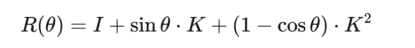 R[0][0] = c + kx*kx*(1 - c); R[0][1] = kx*ky*(1 - c) - kz*s; R[0][2] = kx*kz*(1 - c) + ky*s;