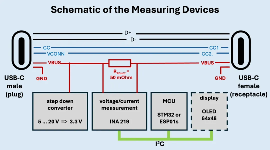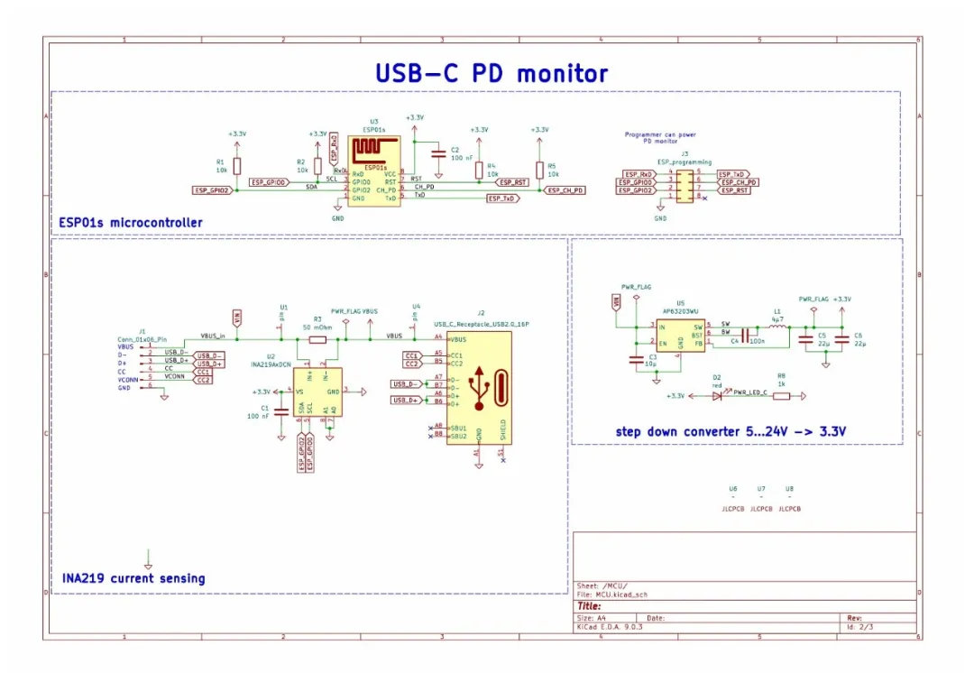 - MCU:带 OLED 显示屏的 STM32(功率计)、带 Wi-Fi 的 ESP-01(PD 记录器)。