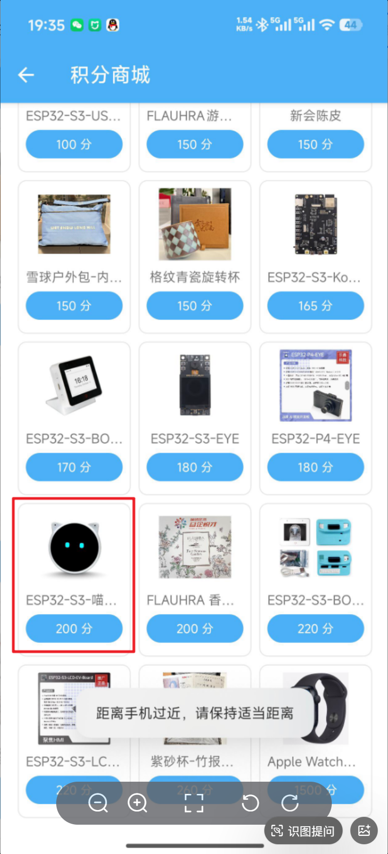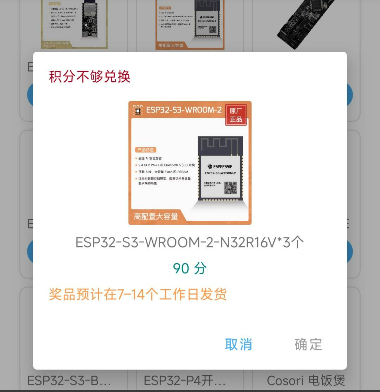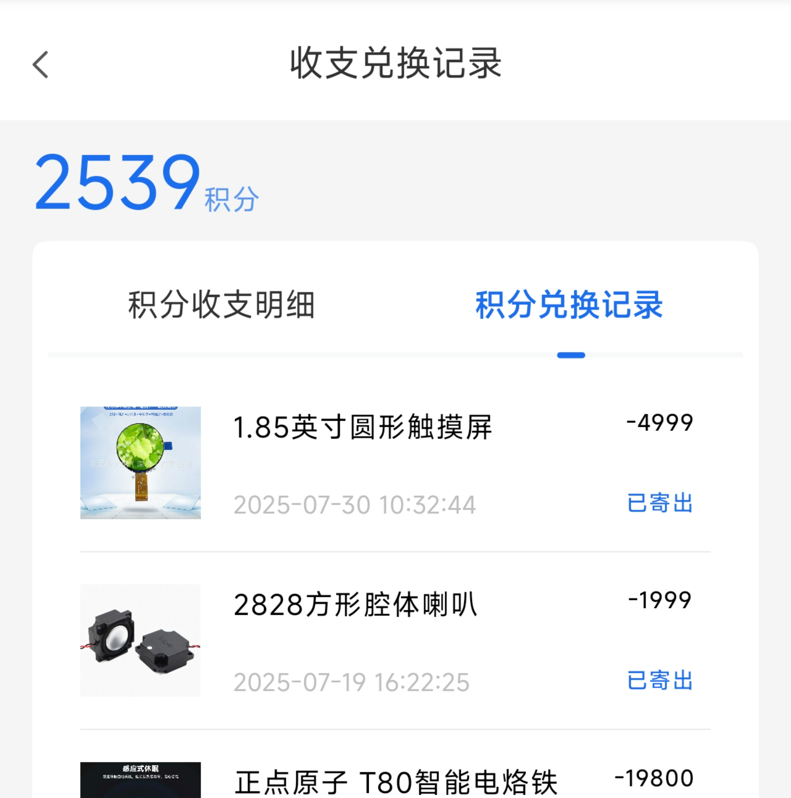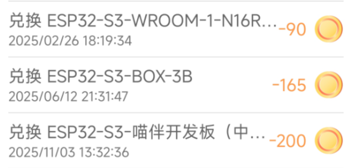 然后换了一个思路,通过乐鑫ESPRecorder做任务,攒积分,200终于攒够兑换了一个,惊不惊喜,意不意外!