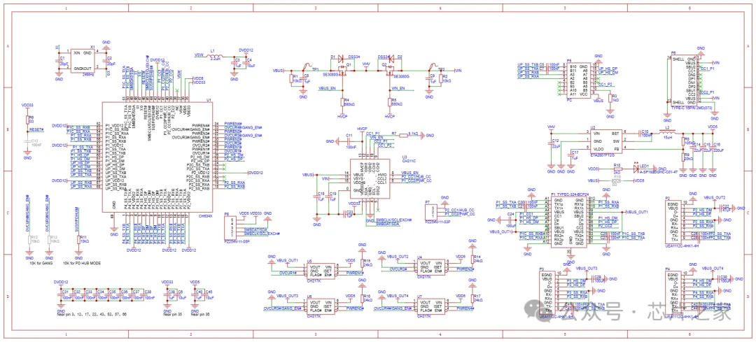 - HUB 通过 CH211C 完成 VBUS 的切换与隔离,保证高压安全导通。