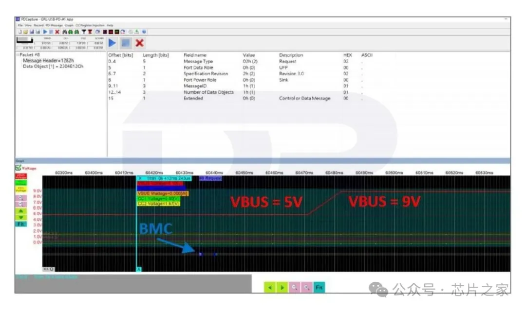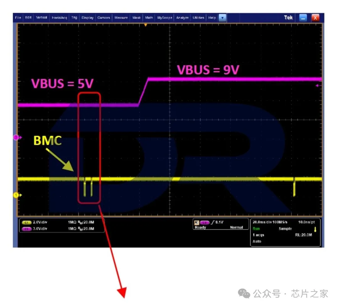 电源供应端(Source)输出电压由5V改为9V BMC波形