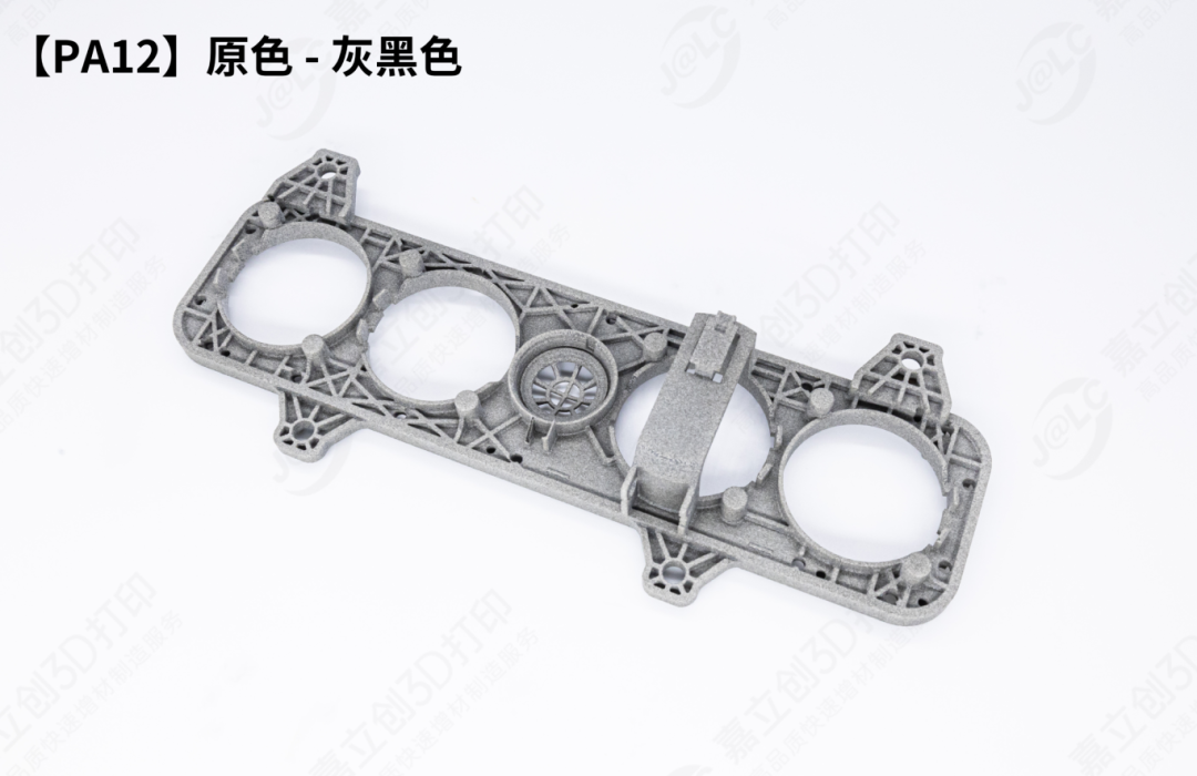 (2)尼龙【PA12】:原色为经典灰黑色(支持染黑后处理),表面略带轻微颗粒感(常规尼龙正常现象),主打实用主义,适合对外观效果无过高要求、侧重功能实现的场景。