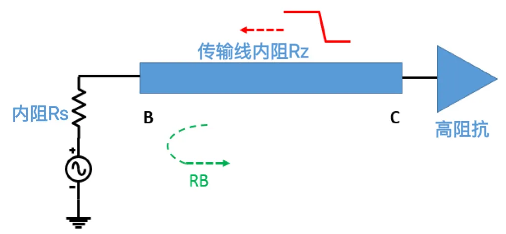 如果传输线后面有一个大阻抗的线路,信号在C点就会被反射。