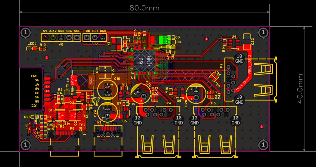 老宇哥最近开源的100W PD HUB项目,里面的USB信号走线就需要做阻抗匹配,差分90Ω,选用JLC04162H-3313层压结构,免费的阻抗管控。