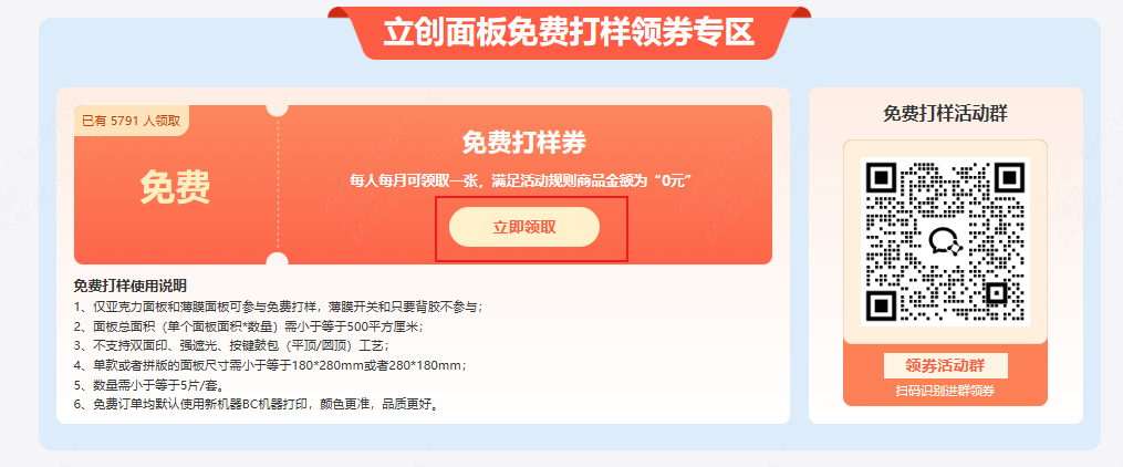 点击立创面板定制-免费打样中心https://activity.szlcsc.com/panel_free_sample.html 即可领券下单