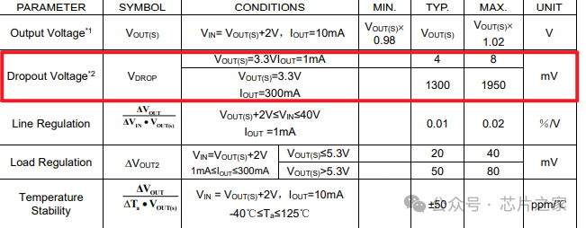 Dropout Voltage基本在4mV@IOUT=1mA,电路整体的电流还是比较小的,所以即便电池掉电个零点几伏最小的压差也能满足。