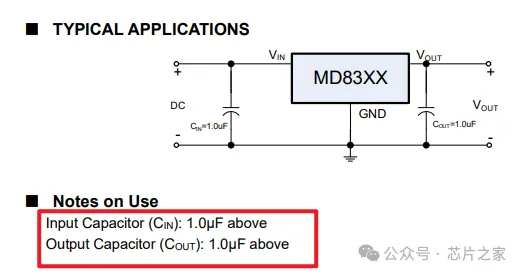 这里有个点,数据手册上,输入输出上只需要并联一颗1uF的陶瓷电容就可以,但是,工程师不知道是不是没仔细看,直接按照经验输入输出都是一颗470uF的电解电容,用肯定能用,但这样是不是真的好,大家评论一下。