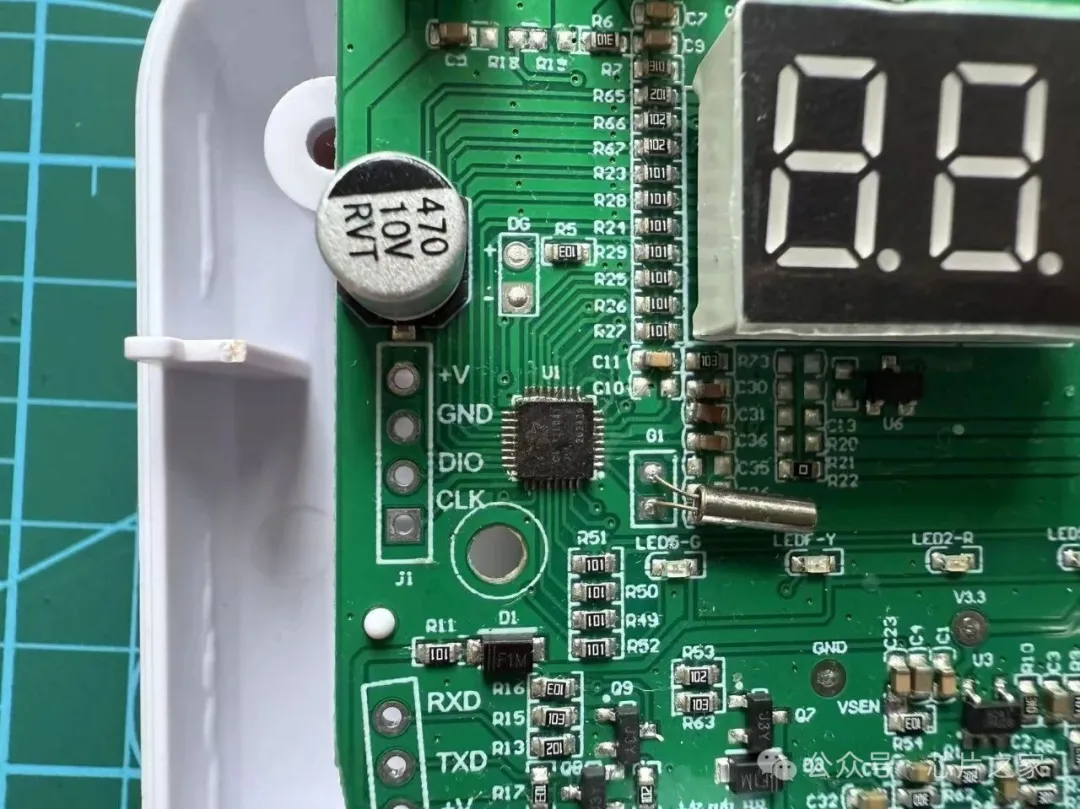 MCU型号为CIU32L051K8U6TR,封装为QFN32,查了一下这是华大电子的一颗低功耗MCU。