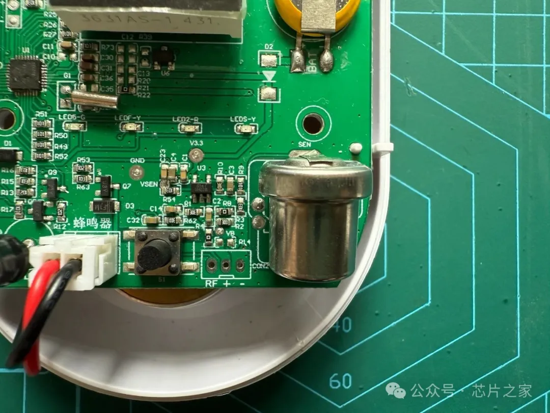 MCU上有一个小电池,配合32.768K的晶振与MCU内部RTC组成时钟系统,这是因为在检测到CO报警的时候,需要记录报警时的时间戳,所以必须要有一个本地时间。
