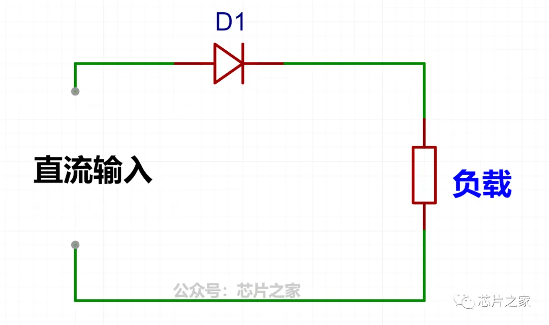 电路倒是简洁,但这个电路有个问题,电路会倒流。假设右侧的负载是一个电池,电压为Vb,当直流输入突然断开时,Q1的Vgs满足MOS的导通条件,PMOS就会导通,电流从右侧往左侧倒流,就可能引发一些未知的故障。
