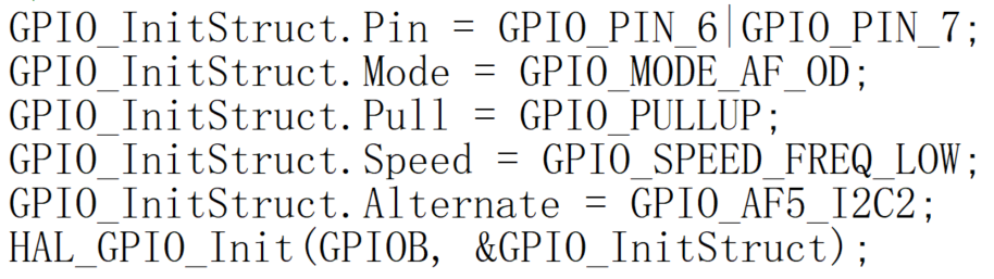 但是明明代码中很明显的写的是内部上拉,而且非常奇怪的是I2C4明明是配置的内部上拉模式,但是I2C1飞到I2C4的时候(飞线)依旧无法使用I2C1。并且如果使能I2C1的话会同样的导致I2C4瘫痪出现同样的问题。